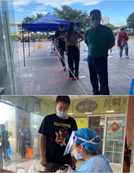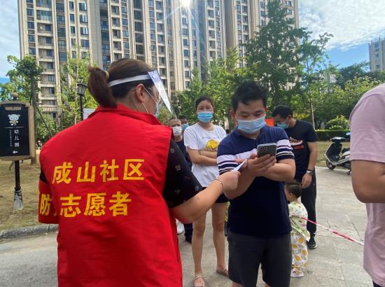在核酸檢測現(xiàn)場,成山社區(qū)居民在排隊時自動自覺地有序排隊,為核酸檢測當天維持秩序的工作人員減少了很大的負擔。經(jīng)過前面幾輪的核酸檢測采樣,社區(qū)居民對烈日下辛苦工作的社區(qū)工作人員和志愿者有了更多的理解包容。