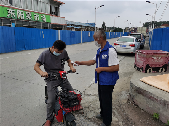 “您好,請(qǐng)出示您的‘蘇康碼’。”69歲工會(huì)防疫人員周忠文遠(yuǎn)遠(yuǎn)地就提醒行人打開“蘇康碼”,同時(shí)測(cè)量體溫才可以通過。一個(gè)黨員就是一面旗幟,在疫情發(fā)生后,老黨員主動(dòng)請(qǐng)纓,擔(dān)起值守卡口的工作,“雖然年紀(jì)大了,但作為一名老黨員,我更要為疫情防控工作奉獻(xiàn)一份力量!”