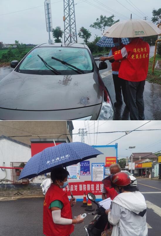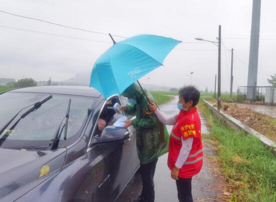 “你好,請留步,麻煩先測下體溫。”在民主王德村的進村口值守點,身著雨衣的志愿者王功文仍堅守在防疫一線,對來往的行人進行排查;在萬家村值守路口,計生信息員志愿者王念琴,衣服早已經(jīng)濕透并貼在了后背,雨傘早已經(jīng)被風吹倒了一邊;任蓋頭村值守路口,退役軍人劉小順雖然穿著雨衣,但頭發(fā)早已經(jīng)濕透......但這并沒有影響大家嚴防死守、阻擊疫情的決心。在民主村多個值守卡點,堅守的志愿者們不畏艱難,用自己的實際行動,為廣大群眾筑起一道道防護墻。