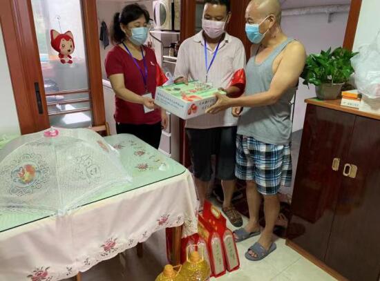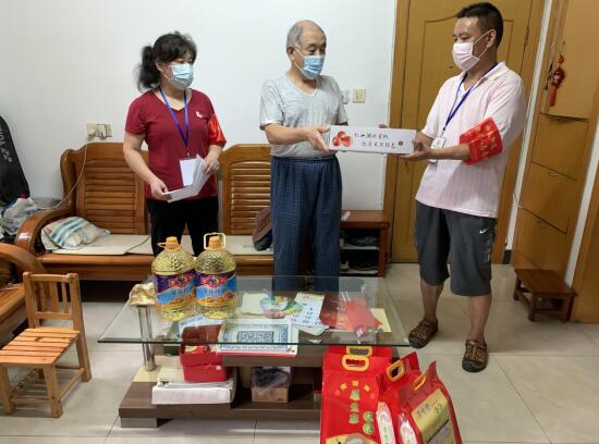 最后,工作人員們?yōu)樗麄兯蜕洗竺?、食用油以及水果等慰問品,囑咐他們保重身體。
