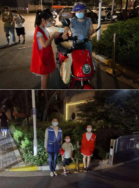 “祝你生日快樂,媽媽你是我的榜樣。”8月19日是燕子磯社區(qū)副主任葛曉雯的生日,但是生日當(dāng)天她依然堅(jiān)守在崗位上,從早上七點(diǎn)就開始在小區(qū)大門值班值守,巡查商鋪防疫情況,生日的到來并沒有對(duì)于她參與防疫工作有什么影響。晚上她的兒女作為小小志愿者,主動(dòng)陪同媽媽一起在交通卡口進(jìn)行值守。“我的媽媽是我的榜樣,她用行動(dòng)告訴我應(yīng)該成為一個(gè)怎樣的人才是有意義有價(jià)值的。”在防疫的一線,葛曉雯和她的兒女就在引導(dǎo)居民配合查驗(yàn)蘇康碼、測(cè)量體溫、登記信息中度過。