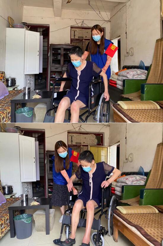 在開展全員核酸檢測摸排工作時,社區(qū)網(wǎng)格員上門為轄區(qū)內(nèi)的低保戶進行上門采樣,發(fā)現(xiàn)這位低保戶因為腿意外受傷骨折,難以下地行走。了解到這一情況后,社區(qū)網(wǎng)格員便及時匯報情況,為低保戶送來了輪椅。細心的網(wǎng)格員李熹本還耐心地教她如何使用,為其調(diào)節(jié)到舒適的高度,同時鼓勵她要積極樂觀的生活,努力克服困難。“感謝你們一直惦記著我,我們算是遇上了好時代。”低保戶激動地說道。