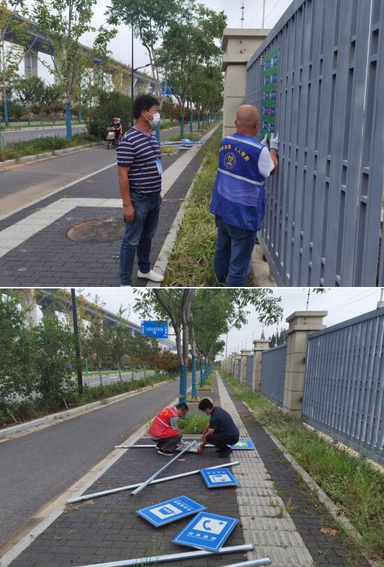 指示牌上具有應(yīng)急避難場所、應(yīng)急物資供應(yīng)、應(yīng)急滅火器等各類標(biāo)識,有助于居民們在發(fā)生危險時及時辨別相關(guān)應(yīng)急措施,從而最大程度保護(hù)自身的安全。該社區(qū)城市治理委員會公眾委員幫助志愿者將指示牌按照要求組裝好,并選定在合適的位置進(jìn)行懸掛,提高行人防災(zāi)減災(zāi)的意識,讓應(yīng)急知識更加深入人心。