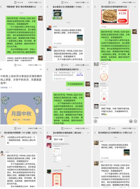 中秋節(jié)是我國(guó)的傳統(tǒng)節(jié)日,它代表著團(tuán)圓、吉祥。人們?cè)谶@一天賞月、猜謎、吃月餅,一家人團(tuán)圓相聚。因?yàn)橐咔樵?,人們自覺(jué)減少了聚集,少了一些戶外活動(dòng)的機(jī)會(huì),卻多了許多陪伴家人的時(shí)間。百水家園社區(qū)精心準(zhǔn)備了有關(guān)中秋節(jié)來(lái)歷和習(xí)俗的科普小視頻,趁此中秋佳節(jié)之際,給小朋友們普及傳統(tǒng)文化,為親子家庭提供學(xué)習(xí)、交流的素材。社區(qū)還給小朋友們留了“家庭作業(yè)”,設(shè)計(jì)了10道在線上課程中提過(guò)的中秋節(jié)知識(shí)趣味問(wèn)答題,檢驗(yàn)小朋友們的學(xué)習(xí)成果?;顒?dòng)中,不少家長(zhǎng)通過(guò)微信群分享了他們和孩子一起學(xué)習(xí)的照片,并表示此類文化活動(dòng)十分具有教育意義,希望能夠多多開(kāi)展。