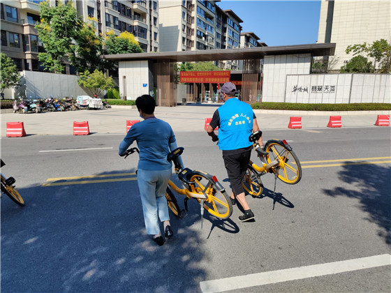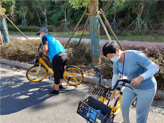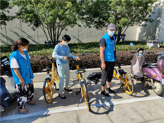 在檢查中,發(fā)現(xiàn)有的共享單車被隨意亂堆放草坪中,有的被隨意擺放在人行道上,這樣即占用空間,也不美觀,更容易造成安全隱患。城市治理志愿者對(duì)亂停在小區(qū)門口附近的共享單車進(jìn)行清理,整齊地?cái)[放在轄區(qū)內(nèi)指定的停放位上。此次行動(dòng)總共清理共享單車10余輛。