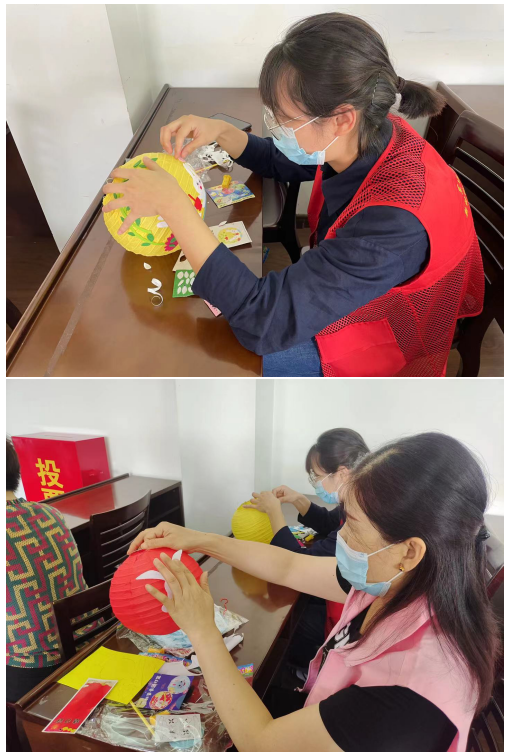 在線下活動(dòng)中,德?tīng)柨倒ぷ魅藛T帶領(lǐng)著社區(qū)工作人員分成兩組,一組制作燈籠,一組制作手工月餅。飲用水和油一起煮開(kāi),加入冰皮粉攪拌均勻,然后用手揉搓增加餅皮的延展性和彈性……志愿者們按照流程,搓圓、壓模、裝盒,紛紛大展身手,忙的不亦樂(lè)乎。制作燈籠組在彩紙上裁下各種不同的圖案,然后貼在燈籠上,熱熱火朝天地進(jìn)行著手中的工作。當(dāng)兩組都制作完成后,工作人員便帶著做好的燈籠和月餅親自慰問(wèn)轄區(qū)內(nèi)的獨(dú)居老人,為他們送上節(jié)日的祝福。