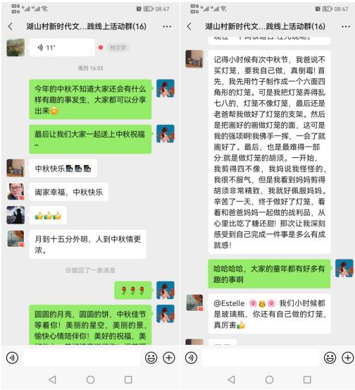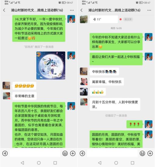 為了迎接中秋節(jié)的到來,同時(shí)減少不必要的人員聚集,9月16日,南京市江寧區(qū)湯山街道湖山村新時(shí)代文明實(shí)踐站的志愿者們組織舉辦了一場(chǎng)主題為“濃情中秋——我心中的中秋”的線上活動(dòng)。