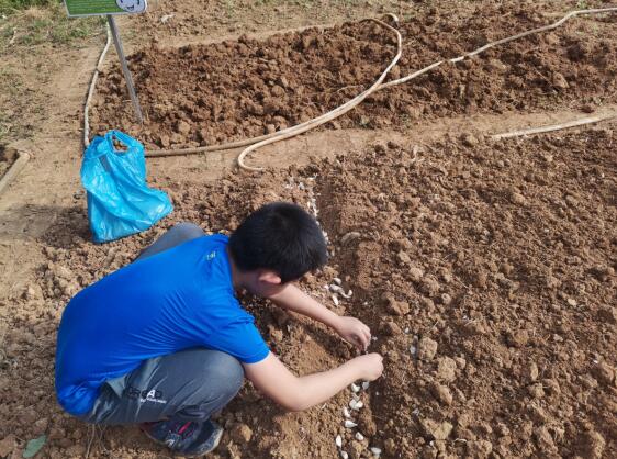 轄區(qū)內(nèi)的萬佳幼兒園有塊“兒童小菜園種植空間”,正值秋季,一些蔬菜的種子需要播種,當天,社區(qū)婦聯(lián)組織了部分10-12歲家庭的孩子參加大蒜的種植過程。在開展勞動前,婦聯(lián)的工作人員們給孩子們介紹了勞動工具(鋤頭)、種子(大蒜)、肥料(有機復(fù)合肥),并說明了使用方法。首先,由家長們給孩子們進行了示范,平整地面,撒入肥料,勾出一條條排蒜的淺溝線,然后把一粒粒大蒜種子排列在淺溝線內(nèi),再蓋上薄薄的一層土,這樣第一排大蒜就種好了。隨后,孩子們有模有樣地按照家長示范的步驟輪流動手,排好后,大家齊力澆水,最后給澆好水的大蒜地面蓋上了一層薄薄的黑網(wǎng),期待大蒜的成長。孩子們的臉上被陽光炙烤得紅撲撲的,掛滿了汗珠,但看著動手的成果,孩子們臉上都洋溢著歡樂,收獲滿滿。