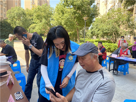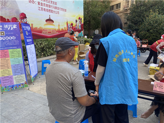 在活動現(xiàn)場工作人員協(xié)助居民完成南京市垃圾分類小程序平臺注冊,志愿者給居民發(fā)放宣傳手冊,并用通俗易懂的語言,簡單明了地向居民介紹垃圾分類知識,“剩飯剩菜、果皮菜葉放在綠色桶里……”呼吁居民積極進(jìn)行垃圾分類,養(yǎng)成垃圾分類的好習(xí)慣,共創(chuàng)和諧美好家園?,F(xiàn)場還設(shè)置了垃圾分類知識問答區(qū),吸引了不少居民參與,每答對一題,則獲得環(huán)保袋一個。
