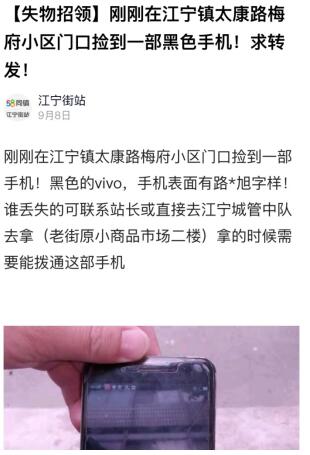 9月8日上午,在江寧區(qū)江寧街道太康路段巡查的城管副中隊長吳明新,被一位路過此處撿到手機(jī)的老人攔住,請他幫忙尋找手機(jī)失主。問明原委后,吳明新接受了熱心老人的委托,守在原地等候半個多小時,卻不見有人來尋手機(jī)。