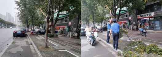 城管隊員立刻將現(xiàn)場進行看護,并聯(lián)合城市治理公眾委員勸導來往行人不要靠近該區(qū)域,以免被砸傷。隨后利用隨身攜帶的工具將枝干殘連的裂口劈開,待完整脫離主干后,立刻用皮卡車將折斷的樹枝運離現(xiàn)場,快速恢復周圍正常交通,圍觀的群眾連連對城管隊員的快速處置表示贊賞和肯定。