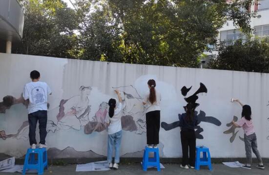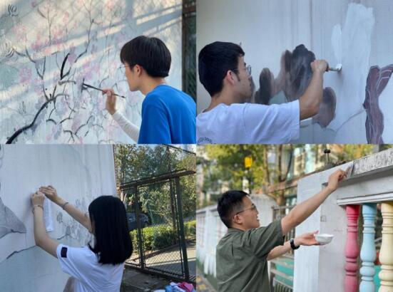 在本次活動(dòng)中,來自南京理工大學(xué)公共事務(wù)學(xué)院的學(xué)生們作為墻繪的主力軍,將“農(nóng)村美起來”和“綠水青山”作為活動(dòng)的主題,以社區(qū)白墻為畫板,繪出美好鄉(xiāng)村生活。在創(chuàng)作過程中,團(tuán)隊(duì)成員分工明確,清理場(chǎng)地、勾勒底稿、墻體上色,迅速進(jìn)入工作狀態(tài)。在大家的共同努力下,一幅幅生動(dòng)的圖畫躍然墻上。此外,團(tuán)隊(duì)成員還對(duì)社區(qū)內(nèi)的幼兒園外墻進(jìn)行了粉刷,孩子們積極參與,從如何調(diào)色到怎樣繪制,再到如何保護(hù)社會(huì)環(huán)境,大學(xué)生們一步一步向孩子們傳授著墻繪的技巧。