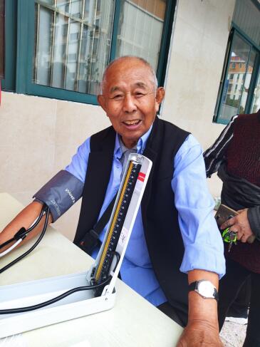 專業(yè)醫(yī)生逐一為老人們測量血壓和血糖,同時根據(jù)老人的測量結(jié)果,對其血壓狀況做出初步的評估以及專業(yè)的健康指導(dǎo)。測量中發(fā)現(xiàn)血壓高、血糖高的老人,醫(yī)生會關(guān)照老年人注意飲食,關(guān)注自己的身體反應(yīng)。在場的志愿者還會向老人普及一些疫情信息和防護知識。