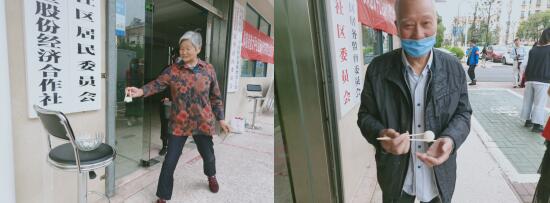 本次趣味健身的運動項目簡單且有趣,設(shè)置了投球、夾乒乓球、企鵝漫步三個環(huán)節(jié)。參與滿三個項目的社區(qū)老人們,可以憑借集齊的三個小紅花,獲得重陽糕一份。