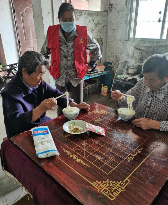 當天,志愿者們來到了轄區(qū)內(nèi)的老年人們家中,將帶來的掛面、雞蛋、洗衣液等生活用品送到了他們的手上,同時祝福他們節(jié)日快樂,也祝愿他們身體健康。在聊天時,志愿者聽到有老人說還沒有吃飯,就熱情地幫他們煮了份面,還打了一個荷包蛋,讓這碗代表著長長久久幸福生活的掛面溫暖老年人的心扉。