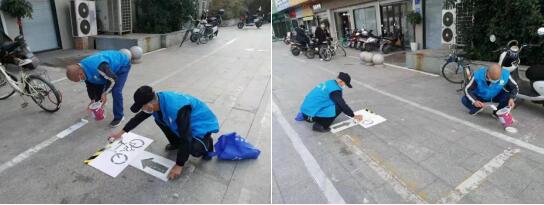 由于使用時間較長、磨損較大,原本畫在路面上的停車線已經(jīng)模糊不清。為了能讓轄區(qū)居民有序規(guī)范停車,城市治理志愿者主動為居民重新畫起了停車線。氣溫驟降,寒冷的天氣中,城市治理志愿者沒有任何抱怨,連續(xù)在室外工作幾個小時,畫完了路上的非機(jī)動車停車位。“畫好的停車位可以讓轄區(qū)居民都能按照箭頭方向停車入位,做到自覺文明停車、規(guī)范有序停車,一改車輛亂停亂放的不文明現(xiàn)象。”城市治理志愿者說道。