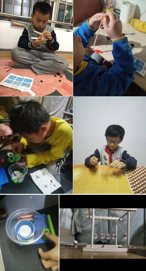 活動前,志愿者在微信群中先進(jìn)行了簡單的互動營造氣氛,接著導(dǎo)入今天活動的主題:通過利用一些材料經(jīng)過設(shè)計(jì)、加工、制作成具有一定科學(xué)原理或科技含量的作品,生成一個小模型、小玩具、小工具、小工藝品。孩子們興高采烈,迷茫、不知從何入手到思考、思索再到豁然開朗,最終掀起了轟轟烈烈的“頭腦風(fēng)暴”杰作;經(jīng)過一番科學(xué)創(chuàng)意制作,顯微鏡、牛頓擺等作品一一展示,而且清洗的干凈、衛(wèi)生。本次活動充分結(jié)合環(huán)保教育,利用一些廢舊物品作材料,變廢為寶,進(jìn)行設(shè)計(jì)、加工、制作。各位家長紛紛把孩子制作過程、動手參與的痕跡拍照發(fā)到微信群。