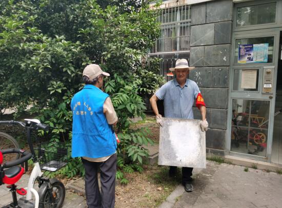 由于社區(qū)所負(fù)責(zé)的兩個(gè)小區(qū)屬于無物管老舊小區(qū),小區(qū)的整體環(huán)境一直較差。社區(qū)工作人員和志愿者們對小區(qū)內(nèi)的綠化帶垃圾、樓道雜物、亂停放非機(jī)動(dòng)車以及飛線充電等現(xiàn)象進(jìn)行了集中清理。與此同時(shí),通過張貼海報(bào)、宣傳欄、LED電子屏、“掌上社區(qū)群”、發(fā)放“一封信”等方式廣泛宣傳公益宣傳標(biāo)語,加大宣傳力度,營造濃厚的氛圍。