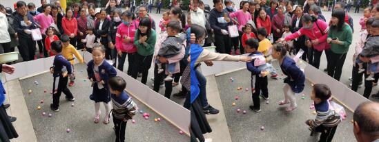 此次趣味運(yùn)動(dòng)會(huì)活動(dòng)共分為3個(gè)環(huán)節(jié),首先是小朋友們的個(gè)人比賽:運(yùn)送乒乓球。小朋友們要把乒乓球從起點(diǎn)運(yùn)到前方家長手中的杯子里,中途球不能落地,在規(guī)定時(shí)間內(nèi)誰運(yùn)送的越多就能獲勝。這項(xiàng)游戲看似簡單,但小朋友們?cè)谕娴倪^程中出現(xiàn)了很多問題,整個(gè)比賽的過程十分有趣。家長們?cè)谝慌詾楹⒆觽兗佑痛驓?,孩子們也慢慢掌握了技巧,最終在限制時(shí)間內(nèi)所有小朋友都取得了不錯(cuò)的成績。接下來的兩個(gè)項(xiàng)目都是團(tuán)體賽,由父母帶著孩子一起比拼。第二個(gè)項(xiàng)目是套圈,家長和孩子每人有5次機(jī)會(huì),套中的東西越遠(yuǎn),得分越高,最后計(jì)算總成績進(jìn)行排名。這個(gè)項(xiàng)目是小朋友最喜歡的項(xiàng)目,每個(gè)人都躍躍欲試。小朋友們也在家長的指導(dǎo)下順利完成了比賽。最后一個(gè)項(xiàng)目是搖搖晃晃,需要家長和小朋友一起通過蹦跳把綁在身上的盒子里的乒乓球全部搖出盒子,比賽最終以時(shí)間來決定成績。在家長和小朋友的配合下,順利結(jié)束了游戲。最終,我們以三輪比賽的總成績?yōu)樗袇①惖募彝ミM(jìn)行排名。