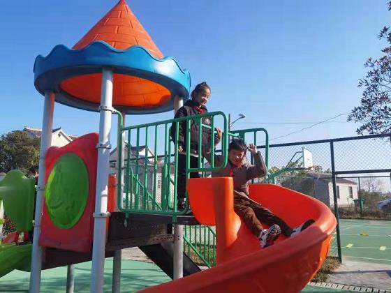 廣場上,有的孩子興奮地表示自己要當?shù)谝粋€滑滑梯的人,有的孩子則陷入既想玩有不敢玩的情緒中,還有的孩子在一旁為正在滑滑梯的小伙伴歡呼著......歡樂的游戲時光在陽光的照射下閃耀著珍貴的光芒,一幕幕都是留守兒童們“時光相冊”里的寶貴一頁。