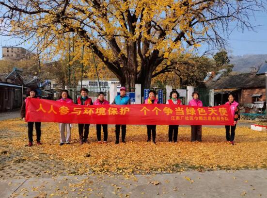 值得一提的是,秋末初冬正是賞銀杏的好時(shí)節(jié),江南廠社區(qū)下轄的小區(qū)中心有一棵古老的銀杏樹,每到這個(gè)時(shí)節(jié)地面上就鋪滿了金燦燦的落葉,美不勝收,志愿者們考慮到這里不是出行的必經(jīng)之路,就僅僅將垃圾帶走,留下了銀杏葉供居民們觀賞。