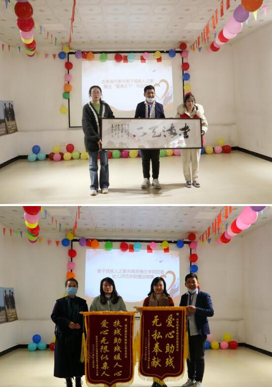 扶殘助殘的路上從不缺少溫暖與感動,愛與被愛都是相互的。殘疾人之家的學員為志愿者送上錦旗,表達了他們對服務隊在扶殘助殘、無私奉獻的感激之情;志愿者代表向君子殘疾人之家贈送“愛滿天下”書法作品,希望在扶殘助殘的路上發(fā)揮更大的作用,做出更大的貢獻。