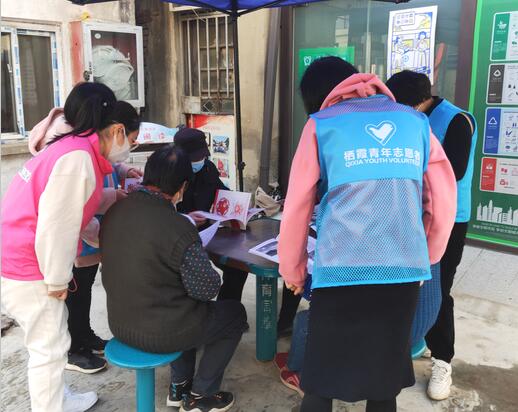 志愿者們向居民介紹和宣傳了我們棲霞街道的特色社區(qū)教育讀本《禪意小鎮(zhèn)、詩(shī)詠棲霞》。這個(gè)讀本中匯集了大量以棲霞山為主題的各類詩(shī)歌美文,其中還有我們身邊的居民自己創(chuàng)作的詩(shī)歌作品,非常受居民們的喜愛(ài)。志愿者們還為視力欠佳的老年居民進(jìn)行了讀本和部分書籍選段的朗讀,獲得了居民的一致好評(píng)。