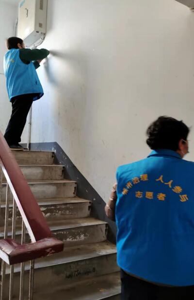 志愿者分小組進(jìn)行工作,大家?guī)夏ú迹?,板刷,小鏟等工具來到轄區(qū)開始清理。此次活動(dòng)主要針對(duì)小區(qū)樓道、墻面、公共設(shè)施等亂張貼的小廣告、雜物進(jìn)行清理,小廣告不僅影響社區(qū)美觀,其中包含的一系列虛假信息還會(huì)導(dǎo)致一些居民上當(dāng)受騙,鏟除小廣告勢在必行。在清理現(xiàn)場,大家拿著小鏟、噴壺等工具,對(duì)樓道的墻體、樓道及樓道扶手上的小廣告進(jìn)行了徹底清理,還有一些粘貼牢固不易清理的小廣告,志愿者用手一點(diǎn)一點(diǎn)將其撕掉。