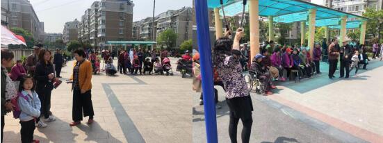 社區(qū)舞蹈隊(duì)把丟垃圾的“各種姿勢(shì)”融進(jìn)原本的舞蹈中,編出一支簡(jiǎn)單易學(xué)的“垃圾分類”廣場(chǎng)舞。開(kāi)始表演前,棲霞區(qū)城市治理公眾委員林新宇現(xiàn)場(chǎng)為居民發(fā)放垃圾分類宣傳手冊(cè),并且現(xiàn)場(chǎng)為大家普及垃圾分類的觀念和常識(shí)。熟悉的節(jié)奏一起,觀眾們和舞蹈隊(duì)一同載歌載舞,把整個(gè)廣場(chǎng)變成了巨大的舞池。