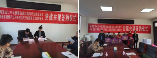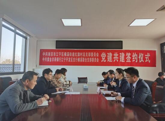 12月17日上午,江寧區(qū)橫溪街道紅旗村黨總支與紫金農(nóng)商銀行江寧開發(fā)區(qū)支行橫溪聯(lián)合支部委員會開展黨建共建簽約儀式。