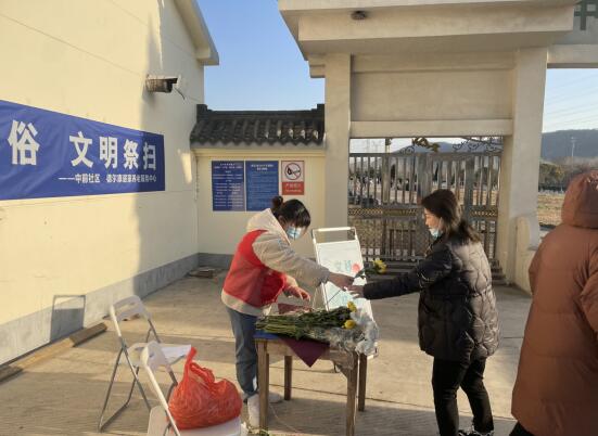 冬至是我國(guó)傳統(tǒng)節(jié)日,也是最重要的祭祀節(jié)日,許多人又踏上祭掃的征途,去祭奠失去的親人。為了倡導(dǎo)居民們祭祀不放鞭炮,不燃燒紙錢(qián),采用低碳綠色、文明環(huán)保的方式祭祀,近日,南京市江寧區(qū)東山街道中前社區(qū)聯(lián)合江寧區(qū)德?tīng)柨稻蛹茵B(yǎng)老服務(wù)中心開(kāi)展“移風(fēng)易俗 文明祭掃”活動(dòng)。