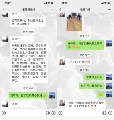 從微信群收到的圖片可以看出活動(dòng)現(xiàn)場(chǎng),每個(gè)家庭都積極參與,特別是孩子們包得十分認(rèn)真、躍躍欲試。她們跟著媽媽學(xué)得有模有樣,一手把面團(tuán)揉搓成小碗狀,一手用筷子往里頭放餡料,然后小心地把面團(tuán)搓勻……家長(zhǎng)們用語(yǔ)音說(shuō)、她們還創(chuàng)新方法事先將菠菜、紫甘藍(lán)、胡蘿卜榨汁、和糯米粉調(diào)色,使得做出來(lái)的湯圓色彩紛呈,讓人產(chǎn)生食欲,令人大快朵頤。從圖片中孩子們的笑臉可以看出,他們是在一片歡聲笑語(yǔ)中完成的。