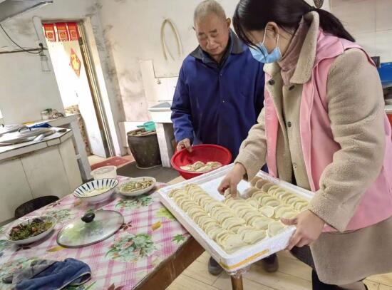 工作人員還將包好的餃子送給了附近的老人,每到一戶,志愿者陪老人拉家常,聊心聲,言語(yǔ)中透露著對(duì)老人們濃濃的關(guān)愛,到處洋溢著“家”的味道、“家”的溫馨。