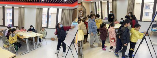 “作為南京的母親河,秦淮河是南京市最大的地區(qū)性河流,由東而西橫貫主城,被稱為‘中國(guó)第一歷史文化名河’,孕育了古老的金陵城和文明。”志愿者引導(dǎo)孩子們坐在桌邊,向他們介紹了本次活動(dòng)的內(nèi)容和意義,讓他們意識(shí)到愛水護(hù)河的重要性。隨后,志愿者給孩子們發(fā)了簽字筆和便利貼,請(qǐng)他們?yōu)橹驹戈?duì)起隊(duì)名、想口號(hào),并投票選出最合適的那一個(gè)。起名完成后,志愿者邀請(qǐng)孩子們用彩色鉛筆、馬克筆畫出太陽、白云、草叢、樹木和運(yùn)動(dòng)、散步的小人等等,把它們用剪刀剪下來,和志愿者一起粘貼成想象中的“綠水青山”,形成一幅巨大的粘貼畫。