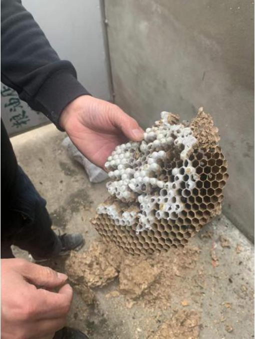 近日,南京市湖熟街道河南社區(qū)002號網(wǎng)格員在巡查居民樓時發(fā)現(xiàn),居民樓之間有一只大馬蜂窩,給周圍居民的生活造成非常大的安全隱患。網(wǎng)格員在第一時間與社區(qū)領(lǐng)導(dǎo)取得聯(lián)系,社區(qū)領(lǐng)導(dǎo)高度重視,在短時間內(nèi)安排專業(yè)的清蜂窩師傅進行清除。