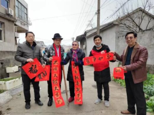 歲末年終,流墨堂文化有限公司孫建寧總經(jīng)理組織省市書畫家陳百園、趙陽、惲安中、蘇青松、張學(xué)義、劉京生、黃海豹、王黎、姜永進(jìn)等走進(jìn)湖熟君子殘疾之家開展“送福送春聯(lián) 墨香暖人心”活動,并為當(dāng)?shù)貧堈?、孤寡老人,送上新年祝?!?/p>