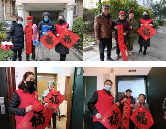 待作品風(fēng)干,身穿鮮艷紅馬甲的志愿者把“福”字和“天地福順家添財(cái),平安如意人福多”“春日祥和幸福年,彩燈高照平安門”等各式各樣的春聯(lián)送到社區(qū)困難群體的手上。殘疾人劉師傅看著來(lái)自鄰居們的祝福,喜笑顏開,不住地贊嘆:“年年都掛社區(qū)的春聯(lián),正想著,今年的就到了。”居民王奶奶,向鏡頭展示送給她的“福”字,對(duì)志愿者說(shuō):“小伙子,麻煩幫我掛上吧,這字紅彤彤的,看著心里暖。”