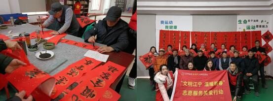 在小區(qū)活動(dòng)中心的會(huì)議桌前,老年大學(xué)學(xué)員濕潤(rùn)毛筆,研磨墨汁,一切準(zhǔn)備就緒便揮毫潑墨,將對(duì)社區(qū)居民的祝福全部融入一筆一劃中,紅彤彤的春聯(lián)讓年味瞬間多了起來(lái)。老人告訴志愿者:“年輕的時(shí)候我就有寫書法的愛好,如今退了休,能夠繼續(xù)這項(xiàng)愛好,還有機(jī)會(huì)把自己的作品與他人分享,感到很幸運(yùn)。”