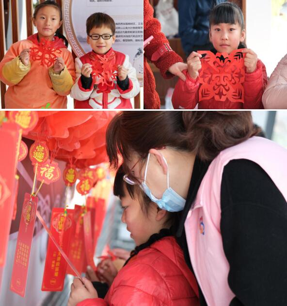 剪紙是中華民族的傳統(tǒng)民間藝術(shù),過年剪窗花是人們對美好生活的向往,窗花的圖案精致,寓意美好,代表著喜慶、團圓。在志愿者的指導(dǎo)下,孩子和家長們一起學(xué)習(xí)剪紙的方法和技巧,認真體驗剪紙的創(chuàng)作過程。大家一邊討論一邊剪紙,一張張紅紙很快變成一幅幅栩栩如生的圖畫,接著,大家將剪好的窗花貼在了展示板和窗戶上,志愿者為孩子們設(shè)立了猜燈謎送小禮物環(huán)節(jié),讓孩子們在玩樂中學(xué)習(xí),在玩樂中成長。