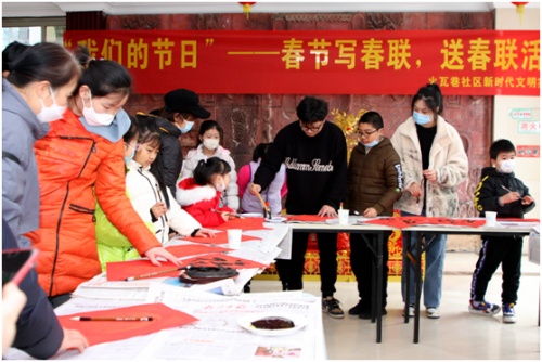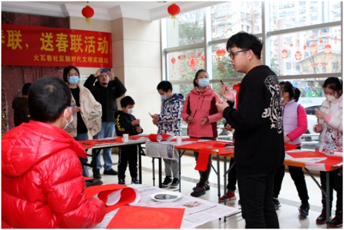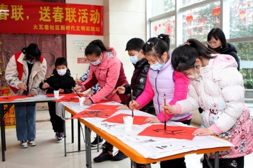 火瓦巷社區(qū)組織美術(shù)書法培訓(xùn)中心志愿者老師給小朋友們輔導(dǎo)書法寫春聯(lián),在活動現(xiàn)場增添迎新春祝福冬奧新元素,營造迎新春祝福冬奧氣氛,跨進社區(qū)開拓創(chuàng)新局面。