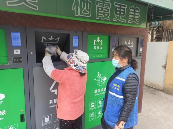 社區(qū)居民們現(xiàn)場(chǎng)學(xué)習(xí)了“干垃圾”“濕垃圾”等分類標(biāo)準(zhǔn),在志愿者的指導(dǎo)之下,居民朋友們自己上手進(jìn)行體驗(yàn)分類垃圾亭的使用。