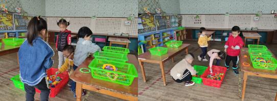 孩子亂扔玩具的現(xiàn)象非常常見,其中一個很重要的原因就是玩具太多,不懂得珍惜,家長也沒有及時引導孩子們養(yǎng)成愛整理歸納的好習慣。在活動中,工作人員先和孩子們講解玩具分類的意義以及具體的分類方式,隨后將玩具擺放在孩子們的面前,讓孩子們根據(jù)所學的知識將不同的玩具擺放在不同的籃子里進行收納。孩子們在工作人員的指導下認真學習,相互討論,很快便將各類玩具分類好,贏得了工作人員的表揚。
