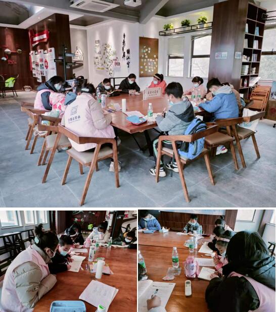 因為孩子們放寒假較早,父母又忙于工作,很難抽出時間照顧孩子,再加上兒童的安全意識不高、好奇心強,獨自在家會有風險,社區(qū)專門在1月20日全天、1月21日下午、1月22日全天及1月23日下午分別開展課業(yè)輔導。課業(yè)輔導中,巾幗志愿者為包括困境兒童在內(nèi)的轄區(qū)內(nèi)孩子們制定作業(yè)任務,督促他們寫寒假作業(yè),并在他們寫完作業(yè)后批改、講解、答疑解惑。孩子們在學習的過程中,也會互相交流,解決困難,也拉近了彼此的關系。