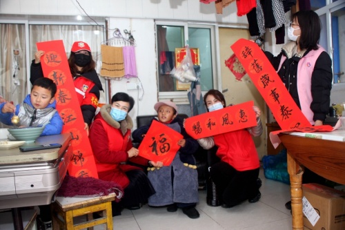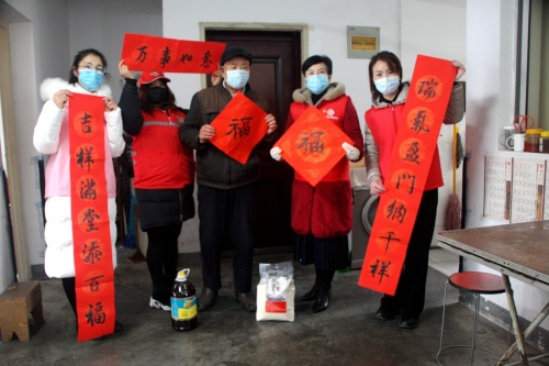 志愿者小曹一直跟前跑后,一邊駕車送志愿者走訪慰問;一邊忙碌著為慰問戶打掃家衛(wèi)張貼“福”字、春聯(lián)。她們把散發(fā)墨香的一條條春聯(lián)和“福”字,送到孤居老人、殘疾孩子及居民百姓家里,這讓他們連連贊賞,深受感動(dòng)。“這送來的還僅僅是一個(gè)福字,代表著社區(qū)對(duì)咱家的祝福,更多的是送來了一片溫暖關(guān)懷。”