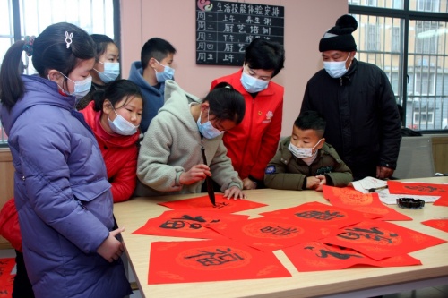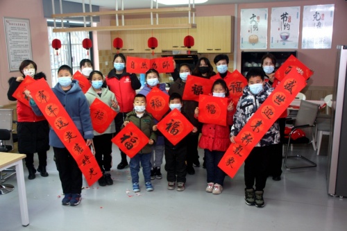 寫春聯(lián),剪春花,做燈籠,孩子們圍繞在書法剪紙老師左右兩旁,大家忙得不亦樂乎,興致勃勃,現(xiàn)場洋溢著迎春祈福喜悅。