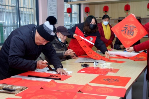 1月25日農(nóng)歷小年,琴聲悠揚(yáng),旋律悅耳的一曲鋼琴演奏音樂聲,從雙金社區(qū)新時(shí)代文明實(shí)踐中心傳來,活動(dòng)室歡聲笑語,其樂融融。社區(qū)老年志愿者談笑風(fēng)生,她們拿著春聯(lián)或者“福””字相互傳遞合影留念,帶著新年夢想留下一張張幸福的笑臉,充滿歡樂喜慶氣氛。