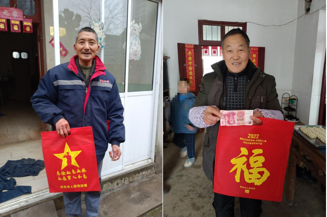 聲聲道祝福,促膝話發(fā)展。每到一處,社區(qū)工作人員與退役同志們親切地拉家常、話健康,詳細(xì)了解他們的身體狀況和生活情況,傾聽(tīng)他們對(duì)于做好新時(shí)代退役軍人服務(wù)保障工作的意見(jiàn)建議,鼓勵(lì)他們繼續(xù)發(fā)揚(yáng)軍人的光榮傳統(tǒng),積極為社區(qū)發(fā)展貢獻(xiàn)力量。最后工作人員為他們送去了新年年畫(huà)、春聯(lián)及慰問(wèn)金,并囑咐道:“馬上過(guò)年了,人員流動(dòng)大,疫情防控還是重中之重,放假期間要盡量避免前往人員集中的密集場(chǎng)所,堅(jiān)持全程佩戴口罩,勤洗手,保持一米線的距離。”