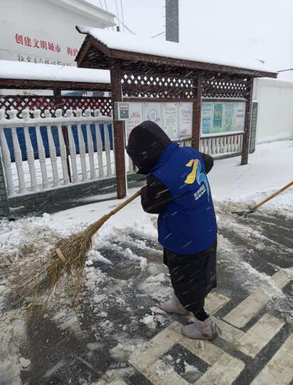 和平村網(wǎng)格員清除積雪保道路暢通