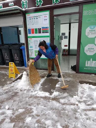 當(dāng)雪花飄落在金陵城,飄落在新年開工第一天上班人的路上,南京市棲霞區(qū)棲霞街道江南廠社區(qū)的垃圾分類指導(dǎo)員也“見雪而動”,紛紛清掃門前積雪、鋪設(shè)草甸,保證居民前來投放垃圾時的安全。