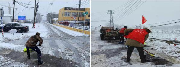 突降大雪,導(dǎo)致主干道、橋面積雪很厚,嚴(yán)重影響了群眾的出行安全,晶明村退役軍人服務(wù)站立即上報(bào)社區(qū)書記蔣崇燈。收到消息后,蔣崇燈書記聯(lián)系組織人手,安排挖機(jī),一同對主干道的積雪進(jìn)行清掃,為過往行人和來往車輛解除積雪帶來的隱患。同時,謝磊同志第一時間投身于掃雪第一線,克己奉公、甘于奉獻(xiàn),并充分發(fā)動社區(qū)退伍軍人加入掃雪隊(duì)伍,在大雪中辛勤勞作、分工配合,將主干道上的積雪清掃完畢。